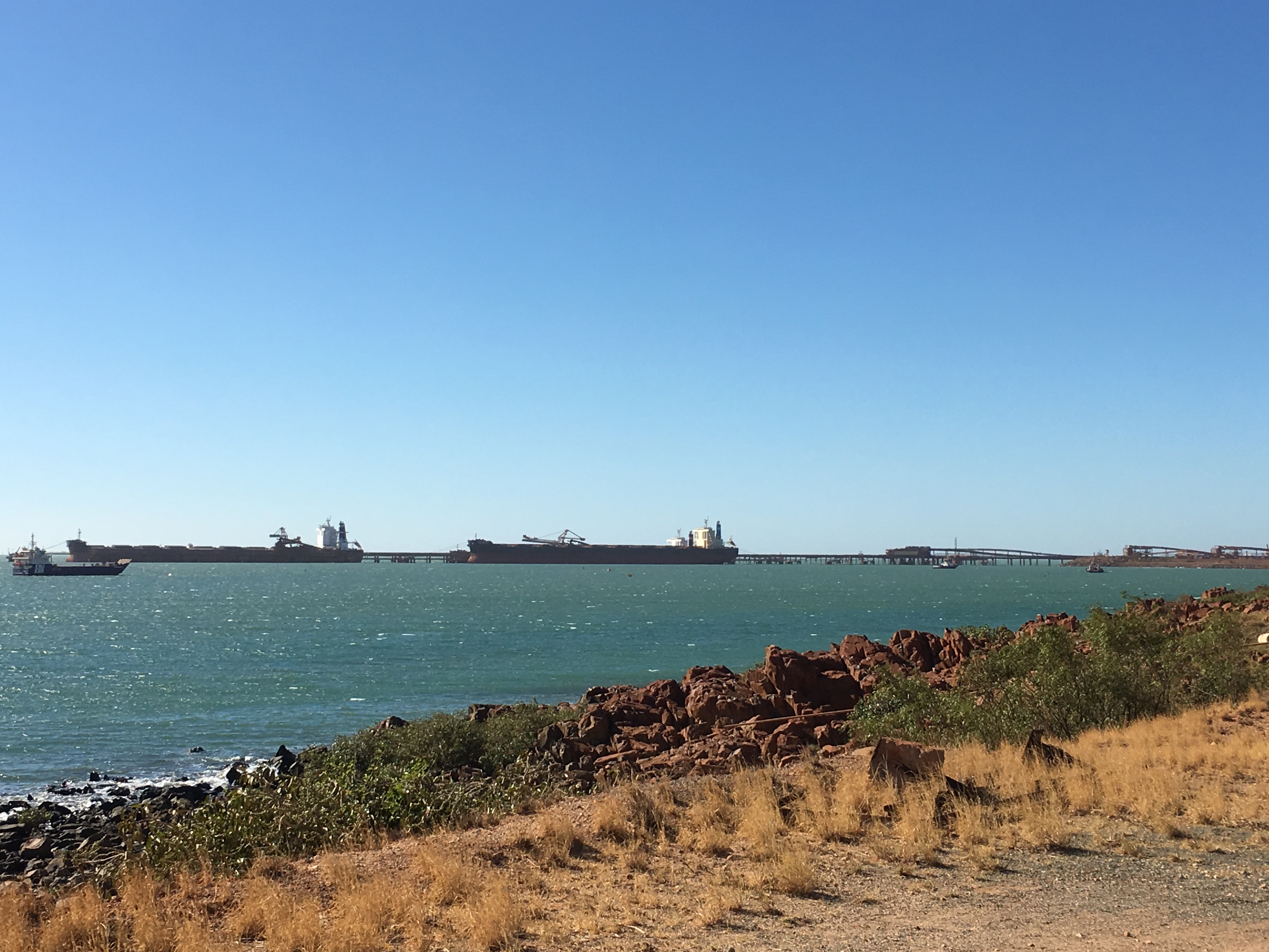 Next on to Point Samson which is about 30km north of Karratha on the coast…We were trapped here for a week by 40km winds which was horrible! Thankfully, the caravan park had a really big warm camp kitchen and adult room next door with cinema chairs and big screen tv!!! So our week consisted of cooking our meals in the camp kitchen and either reading or watching tv next door!!! Point Samson was also the beginning of the Backgammon championships – current score 7-4 to SAM 🙂 We did get out a couple of days for a drive…to Cossack – a historical township that is now a museum. Went to Karratha and Dampier another day to have a look – salt mines and iron ore ports!