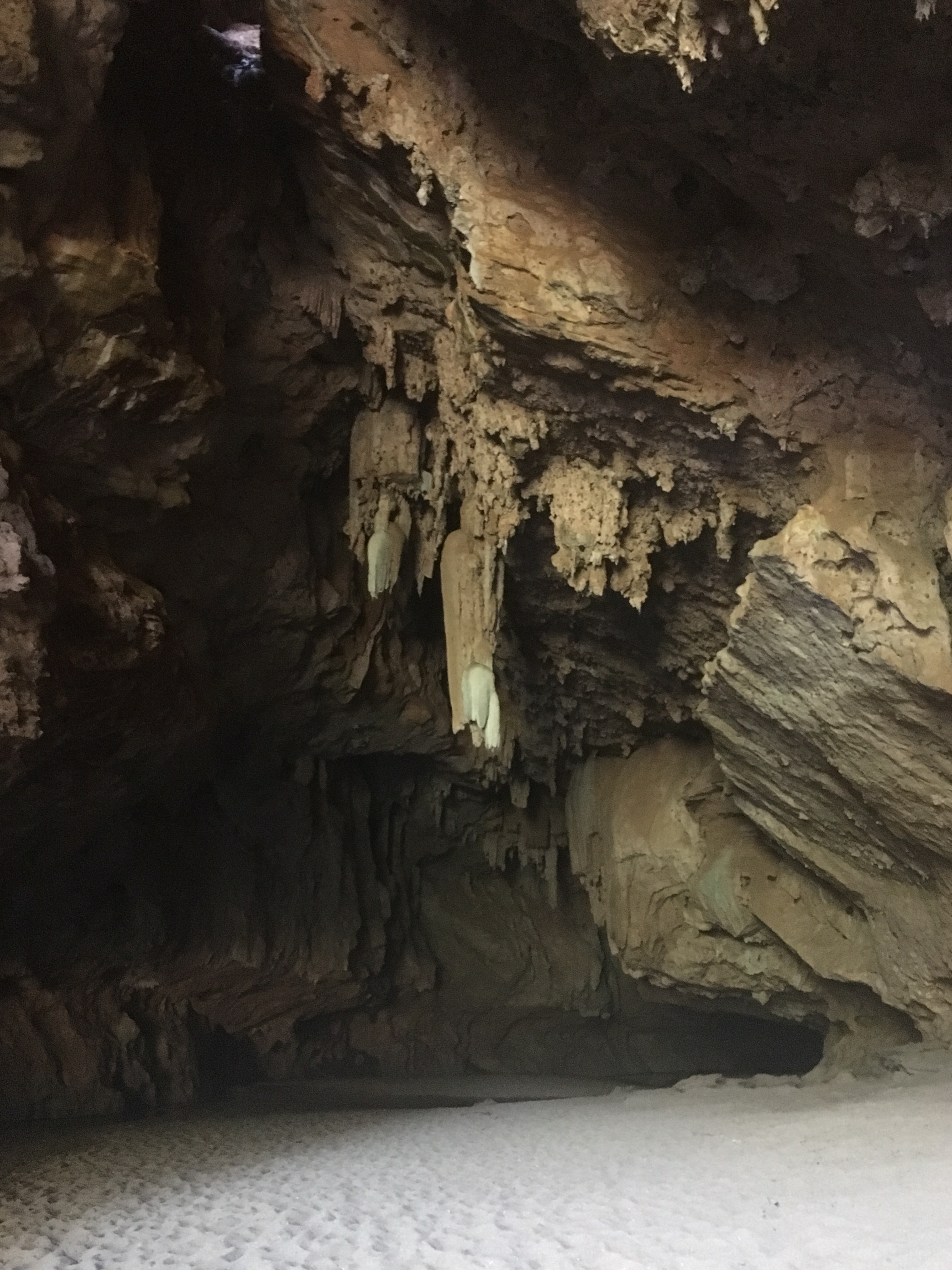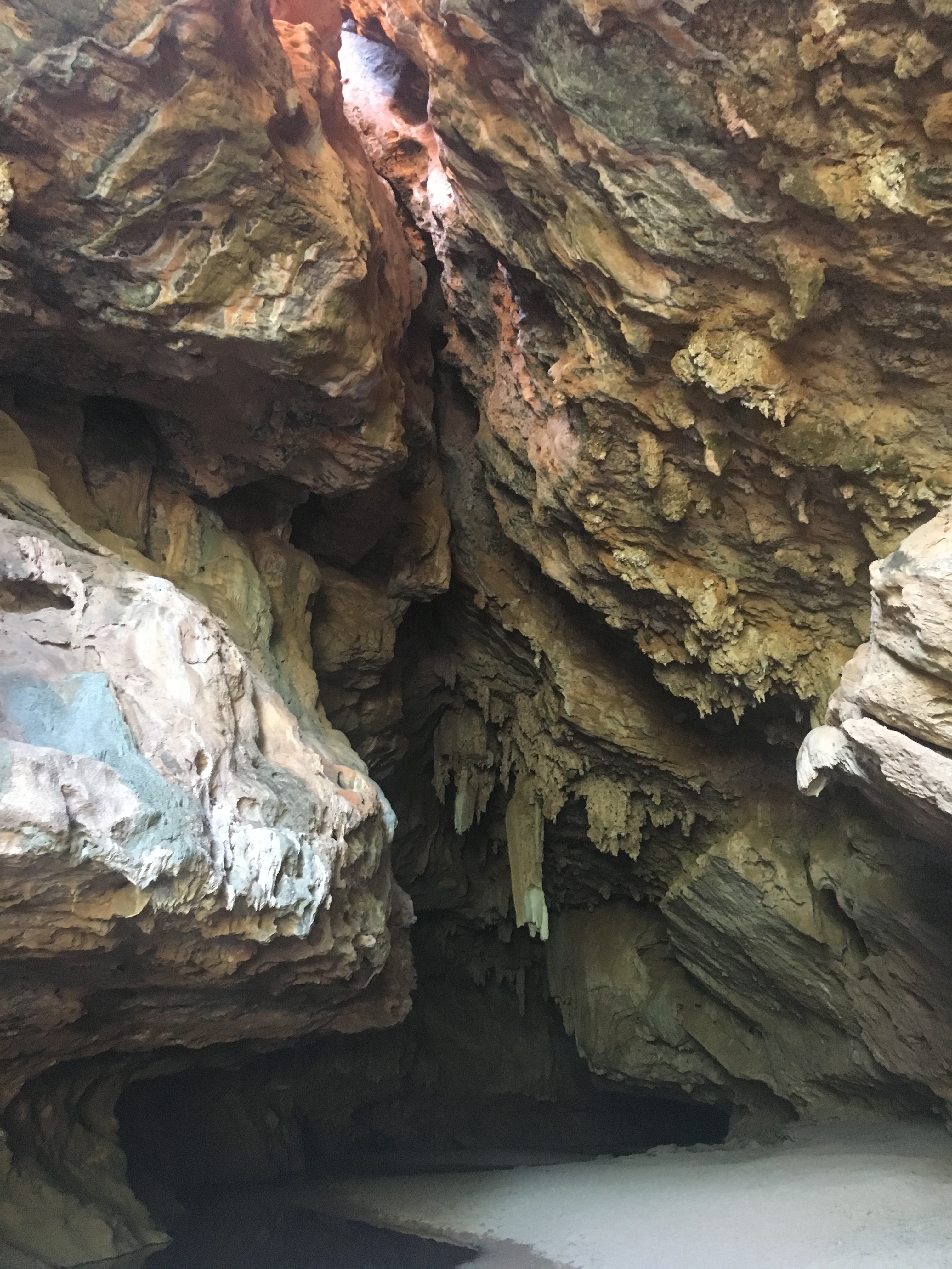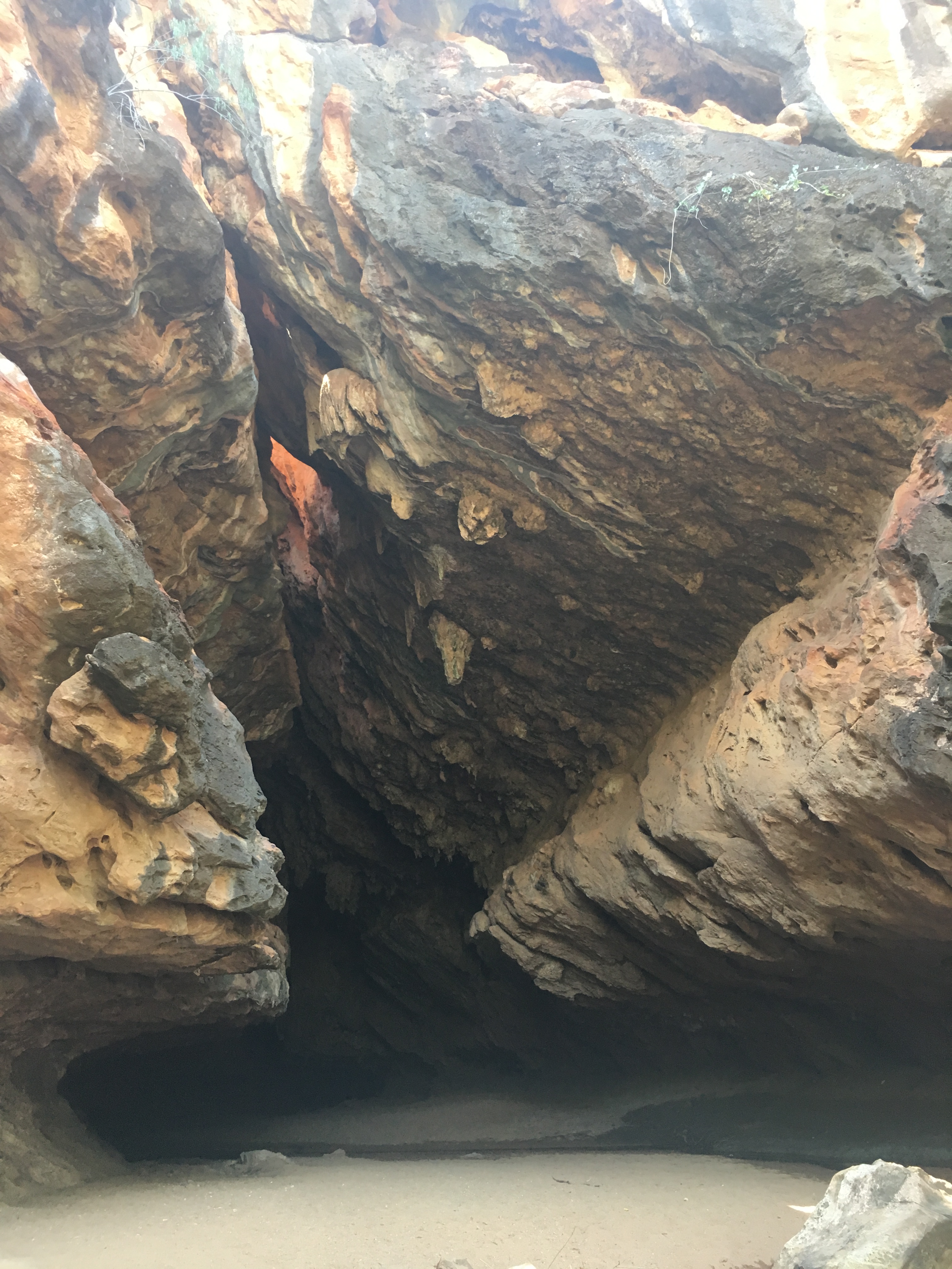 Then to Tunnel Creek 35km away, the site of an infamous incident in Australian history, stunning place, Chris only got to the beginning of the cave system in his prescription sunnies – and realised he had forgotten his other glasses, so Sam had to proceed in the darkness with her headlamp to explore and take the photos!