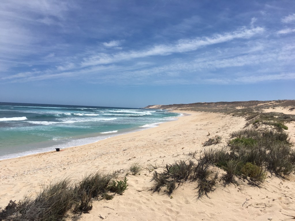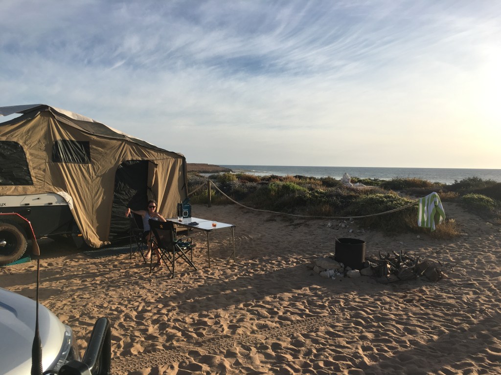 Stayed 2 nights at Quobba Station on a 1 of 6 ocean front campsites – fabulous views and we even had a fire (yes….still windy!!!!) Blowholes nearby were cool, drove 25km north to try fishing – only caught some dart which we threw back!