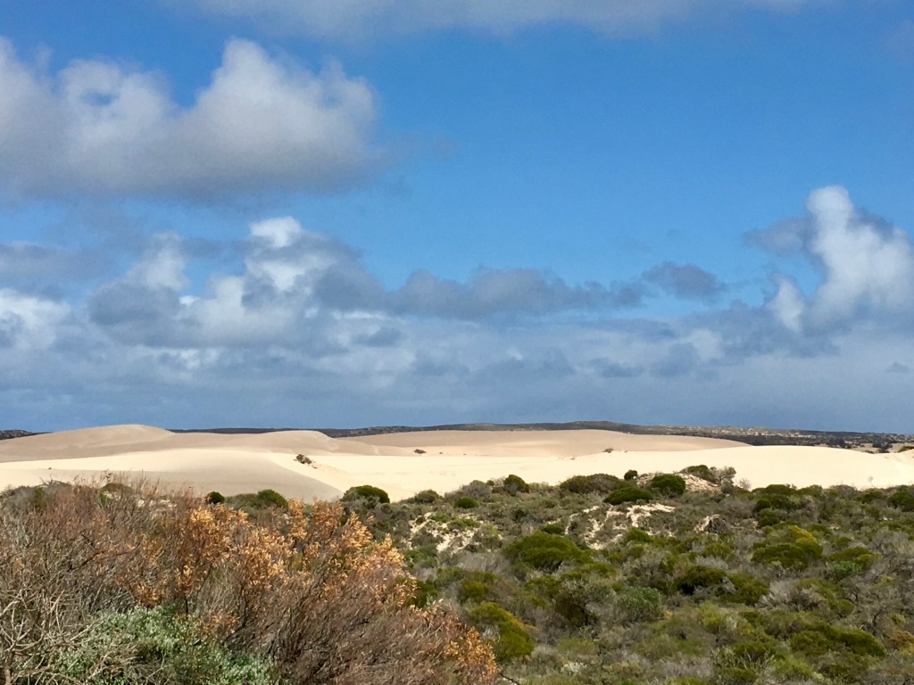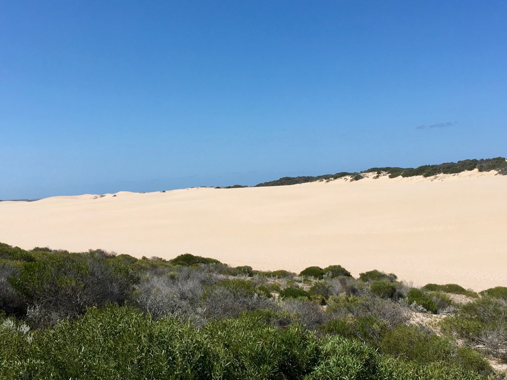 2km down the track at the rangers station is where you can catch the barge over to Dirk Hartog Island. The Zuytdorp Cliffs south of Steep Point extend some 200km to Kalbarri which are spectacular – rise up to 200m out of the Indian Ocean. Also travelled through some beautiful sand dunes, wildflowers and glorious beaches.