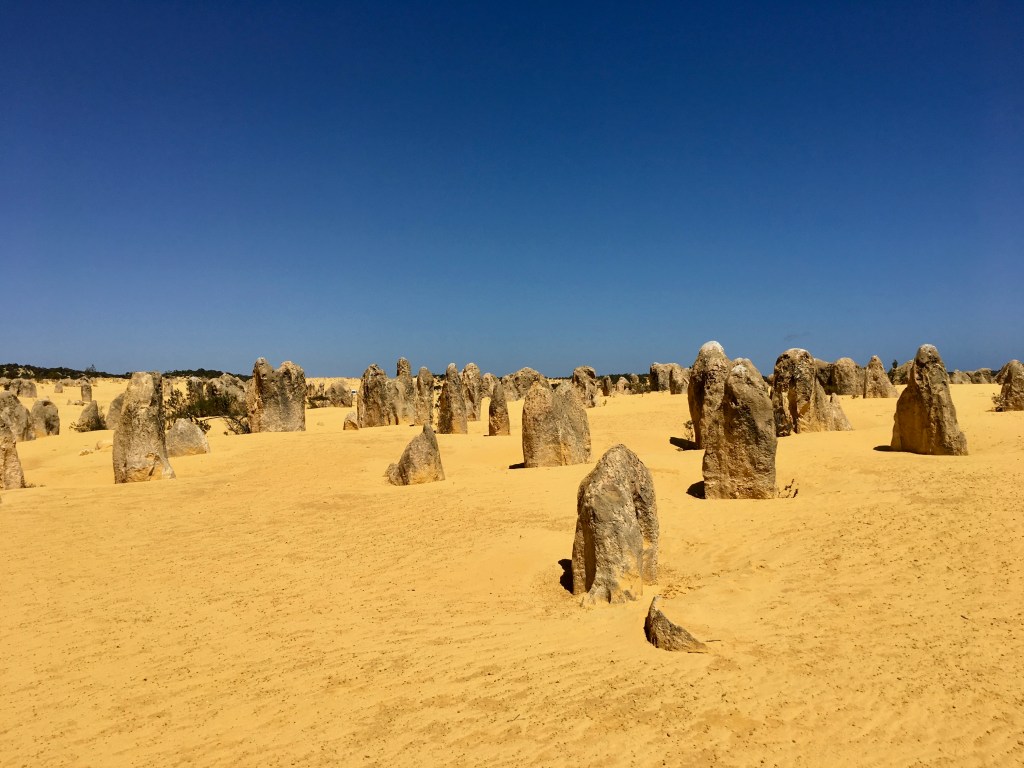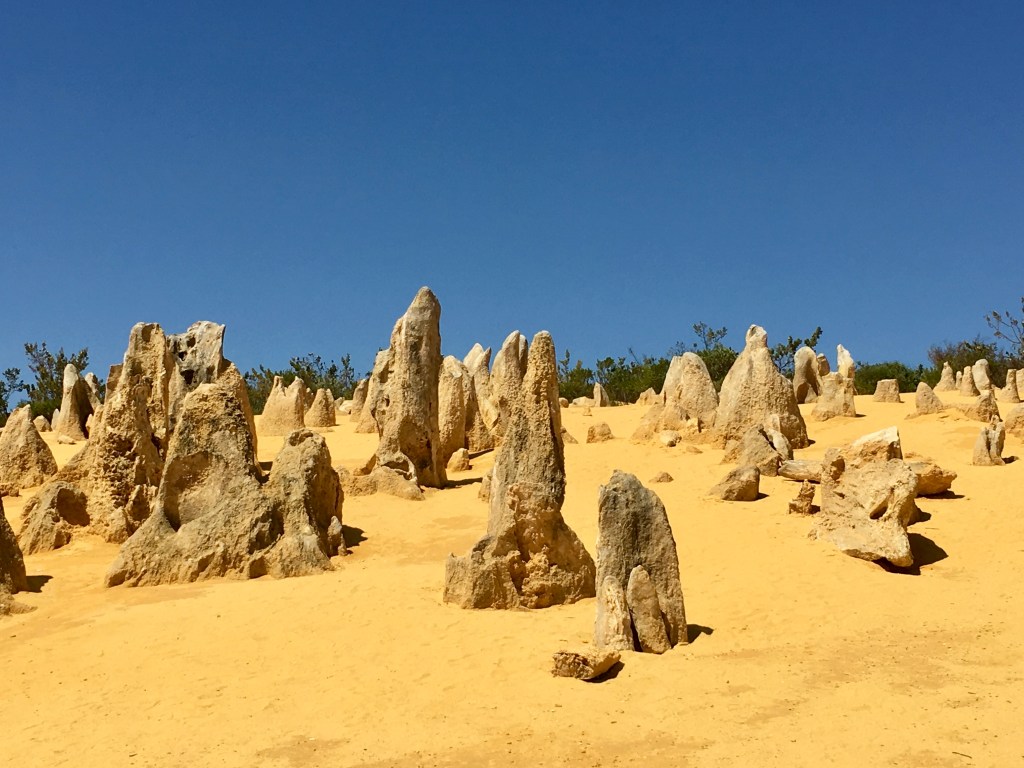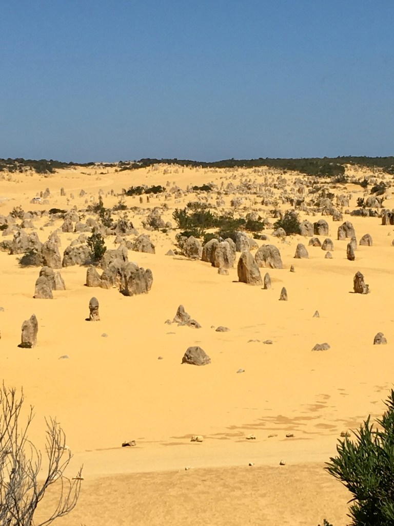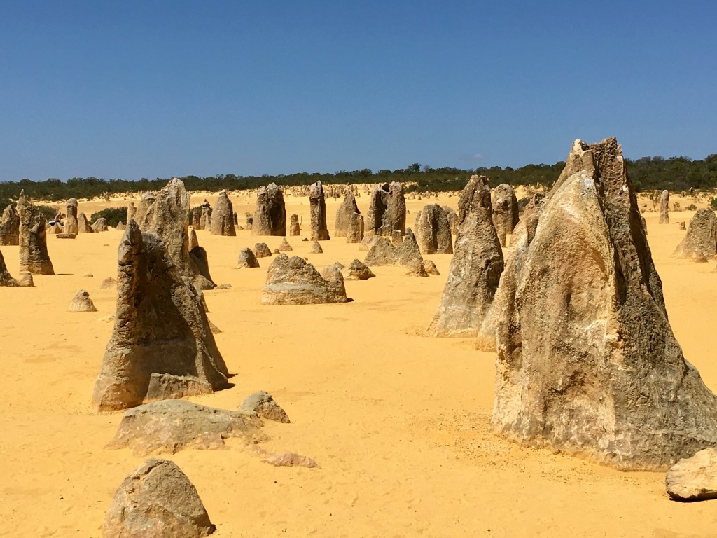 What an amazing freaky place! The area contains thousands of weathered limestone pillars. Some of the tallest pinnacles reach heights of up to 3.5m above the yellow sand base. The different types of formations include ones which are much taller than they are wide and resemble columns, while others are only a meter or so in height and width resembling short tombstones.