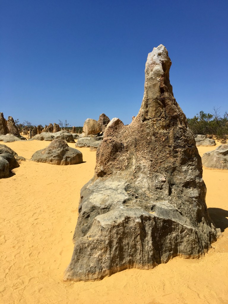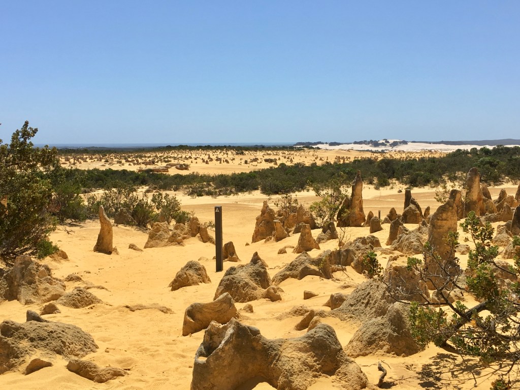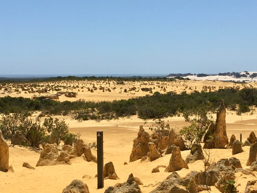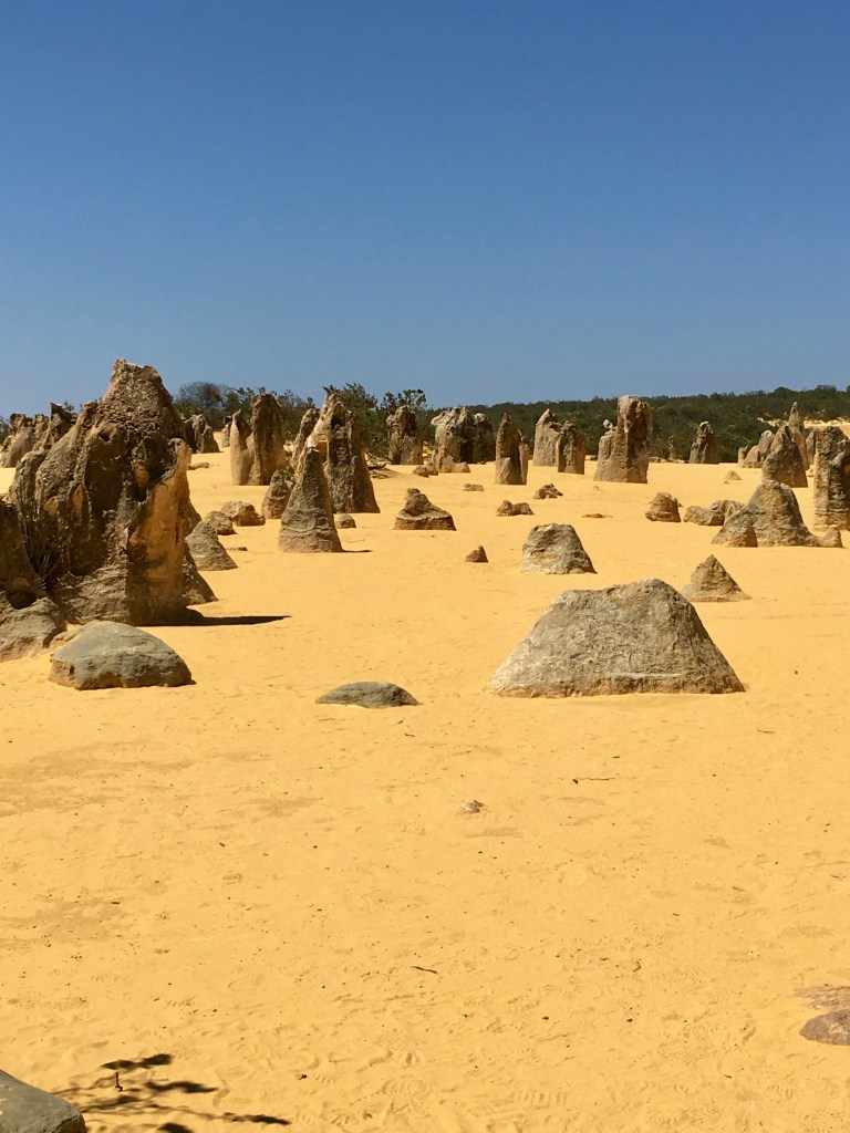 What an amazing freaky place! The area contains thousands of weathered limestone pillars. Some of the tallest pinnacles reach heights of up to 3.5m above the yellow sand base. The different types of formations include ones which are much taller than they are wide and resemble columns, while others are only a meter or so in height and width resembling short tombstones.